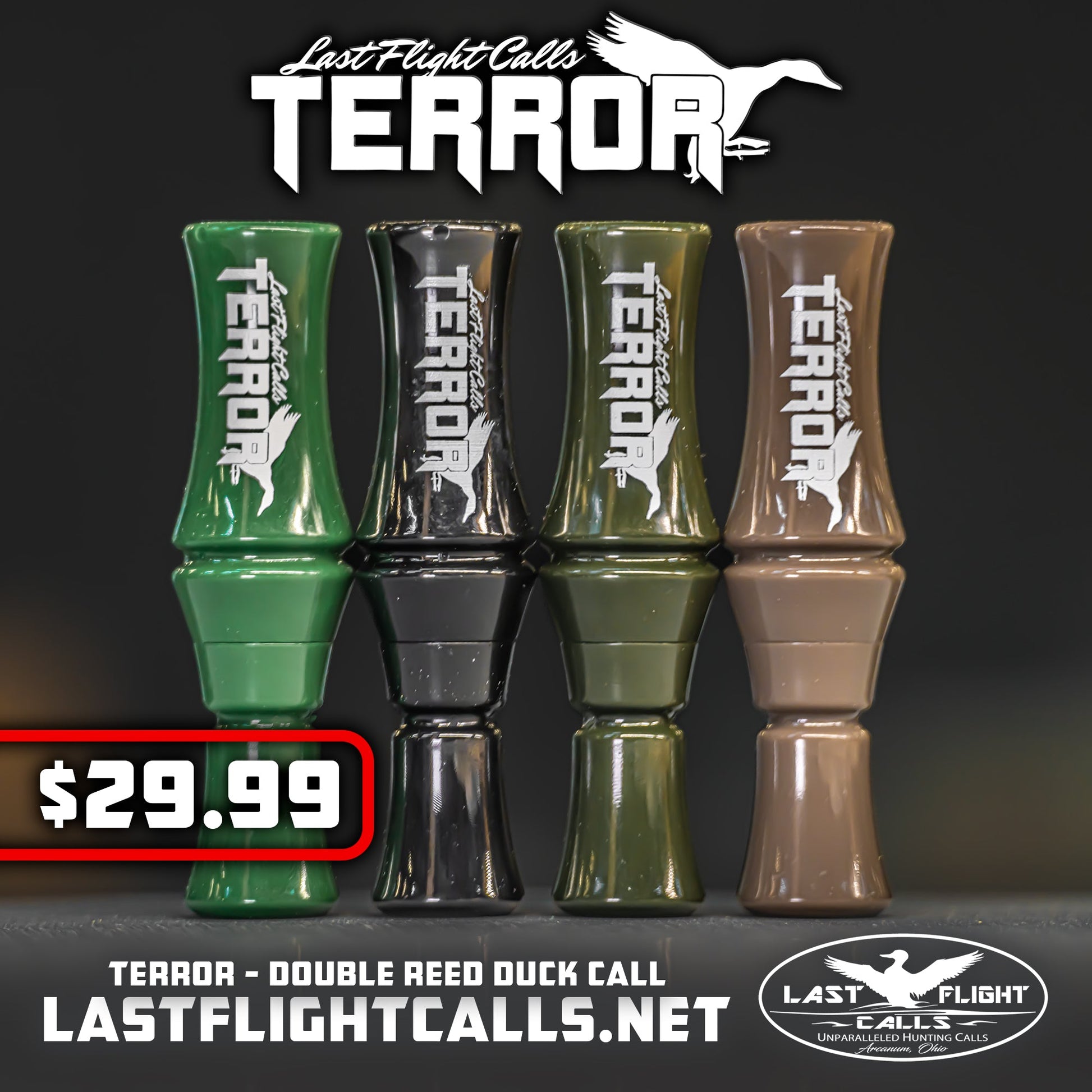 THE TERROR is a double reed call and the newest duck call from Last Flight Calls. The Imposter is the TERROR's big brother but make no mistake the power that this little brother brings.
